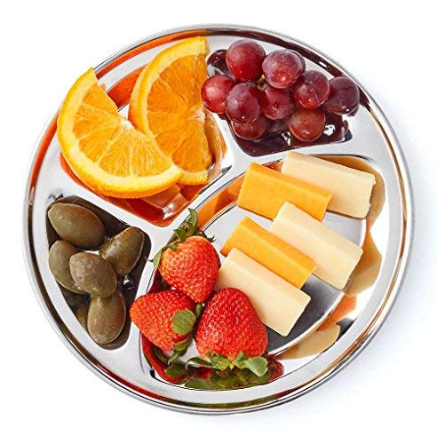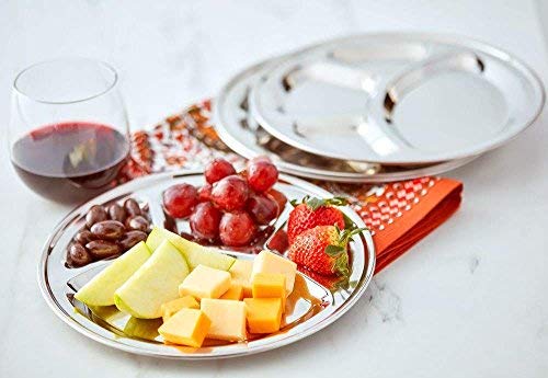 Khandekar Stainless Steel Round Divided Dinner Plates Compartment Dinner Plate with 4 Sections Mess Tray Food Plate - Silver 12.5 inch