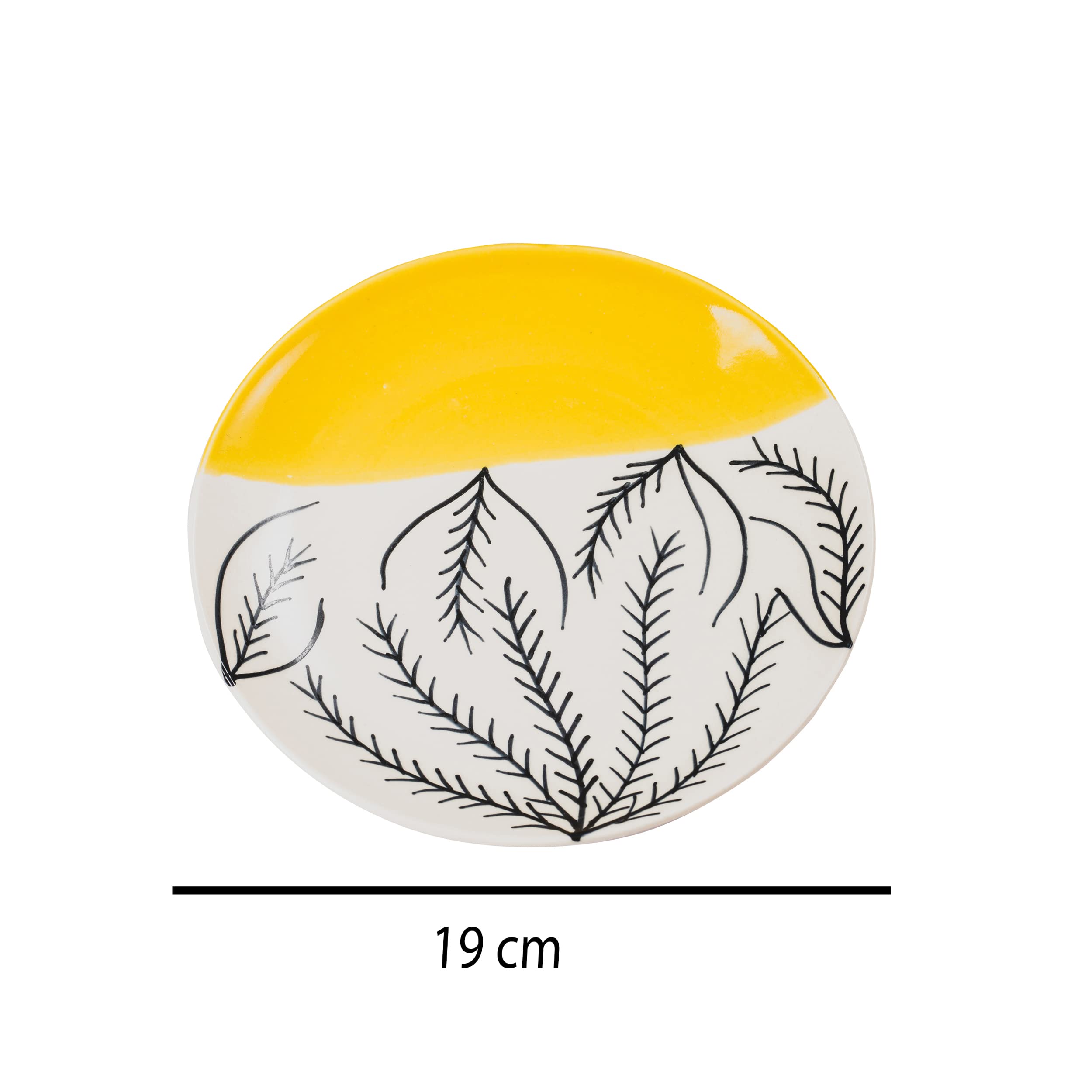 KHURJA POTTERY Ceramic Serving Designer Dinner Quarter Plates Set of 4 (Microwave and Dishwasher Safe)