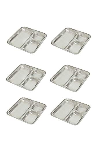 Dharam Paul Traders Stainless Steel 3 in 1 Compartment thali set /dinner plate tray with Deep Square katoriHigh quality and high polish plates.These thalis are made from 18/8 stainless steel that is completely food safe and hygienic to use .The steel used is unbreakable and does not gets rusted over time.You can freely use these thalis as these are non brittle .The katoris of these thalis are extra deep so as to accomodate much amount of sabji/pulses etc.