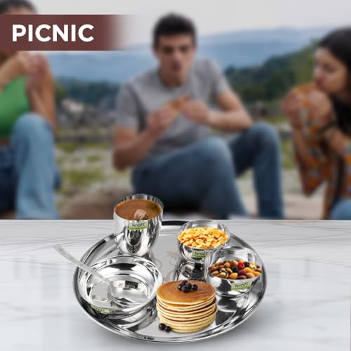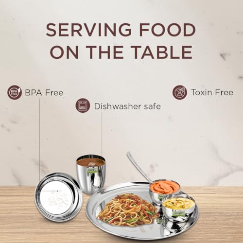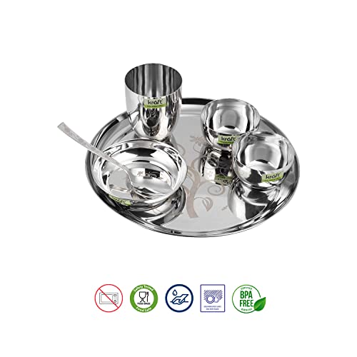 Kraft Classic Traditional Stainless Steel Dinner Set of 1 Thali - 6 Pcs | Premium, Elegant Design | Mirror Finish | Food Grade, Toxin Free | 2 Year Warranty - Silver