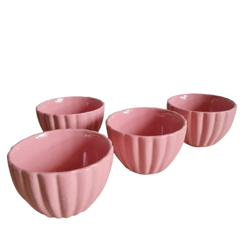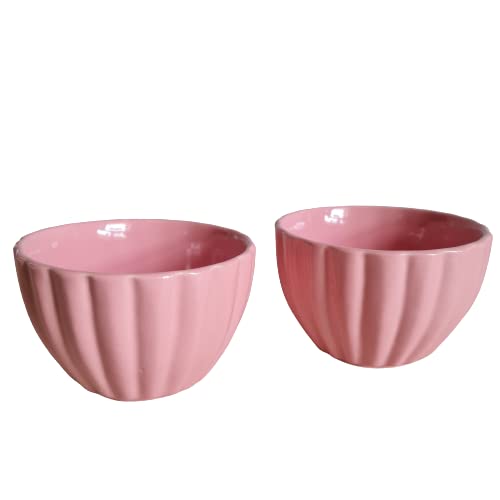 These KHURJA POTTERY ceramic round bowls are handmade and handpainted by Indian artisans. The top diameter of the bowl is 10.5cm and the height is 7cm. The capacity of each bowl is 300ml. As the bowl is handcrafted there may be a slight difference in color and finish or few pinholes may occur; however this does not change product quality in any way. These big bowls are made of ceramic and so they are non-toxic non-reactive can retain heat for a long time and do not catch the flavour or colour of the product put in them. They are also easy to clean and lasts for years. They are also dishwasher safe on the mild cycle. These big ceramic bowls are also lightweight Microwave Oven Freezer OTG safe and chip resistant and so act as bakeware too. Medium size of these ceramic serving bowls makes them perfect for multipurpose uses. The ceramic bowls are perfect to bake or serve various food dishes like soup dal rice pasta curry/gravy noodles desserts snacks sauces or chutneys. The color available is pink which makes them perfect for any setting and their stylish look also makes them a wonderful gift for your loved ones who are moving into their new home or love eating out of pretty bowls. They go perfect with a boho nordic or colorful house theme. Serve your breakfast lunch or dinner in style. The product's description and images are copyright of KHURJA POTTERY. It is a request that is not copied or altered. We promise to give you the best product and service. In case you have questions or problems with our product do not hesitate to contact our store. If you are interested to see more of our product range search "KHURJA POTTERY" in the search bar.