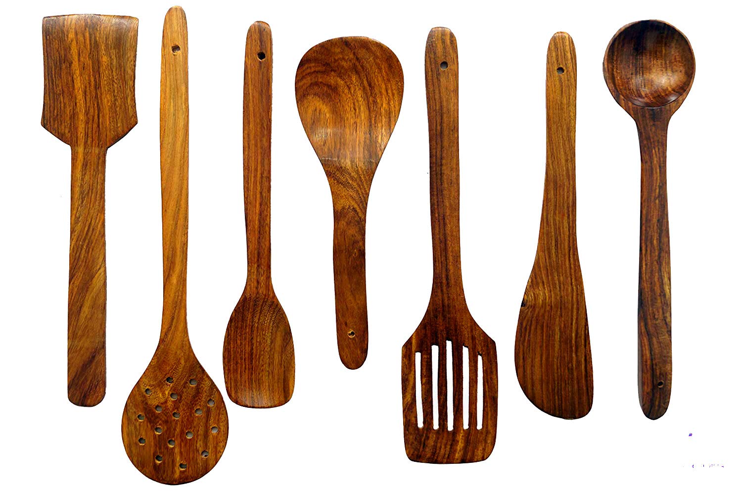 Direction for Use 1.Clean your wooden spoons well after every use. 2. Fill a sink or bowl with warm water. Add a few drops about one teaspoon of liquid dish soap to the water and then add the spoons to the water. 3.Wet a scrubbing pad in the soapy water. 4.Scrub the wooden spoons until all remnants of food are gone. 5.Rinse the spoons well under warm water. 6.Dry them with a towel and hang them (from a utensil hook) to finish drying.Set Of 7 Spoon