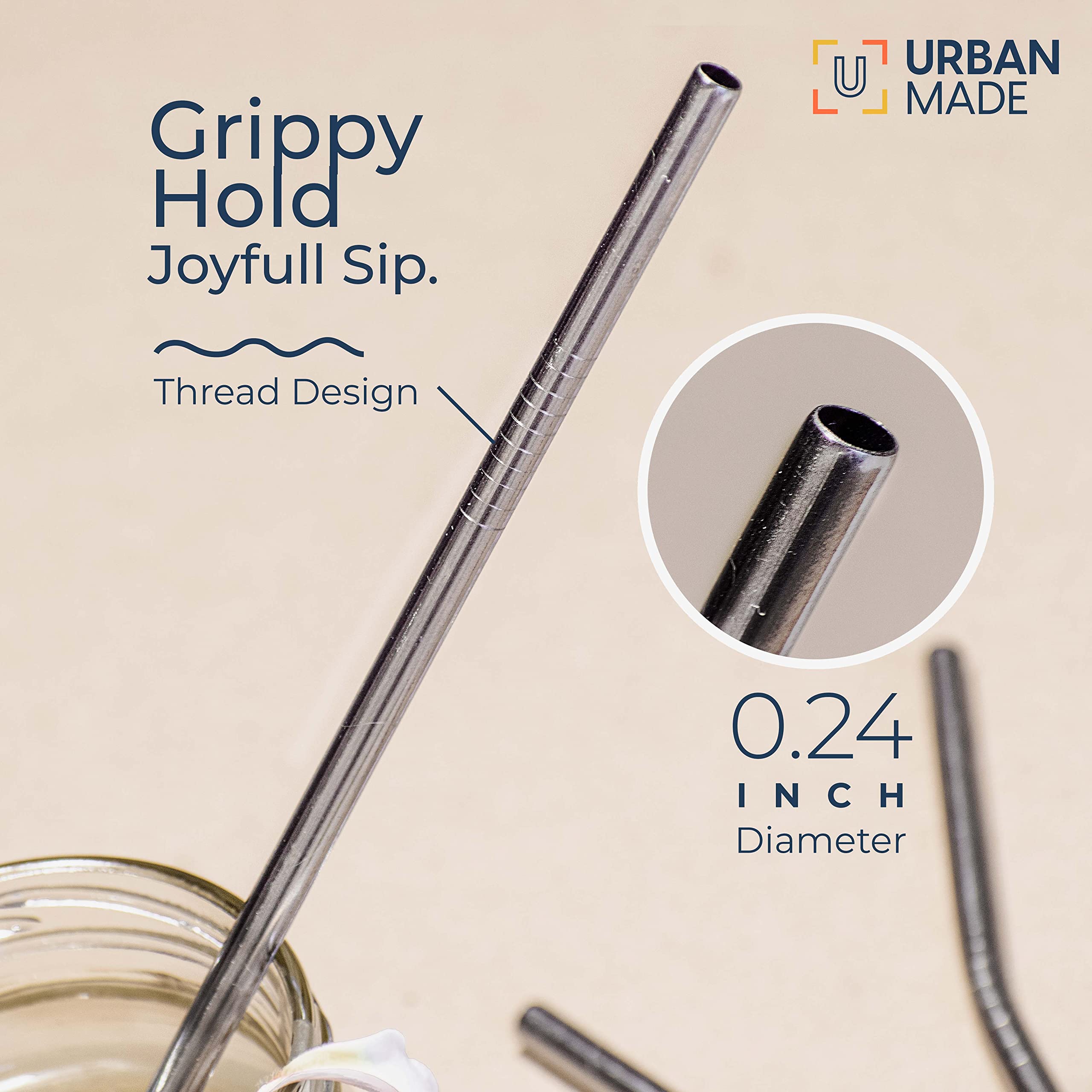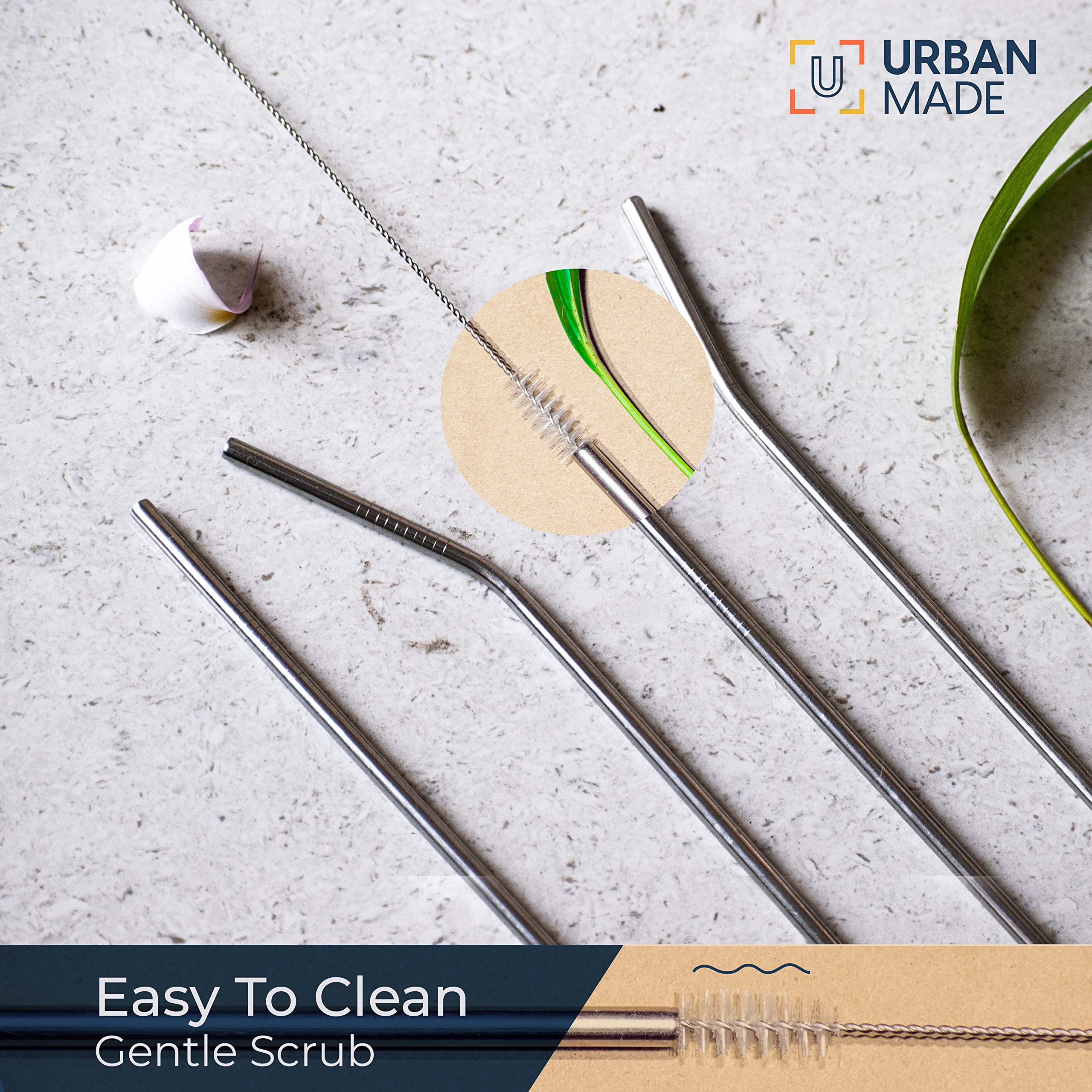 UrbanMade Straw Stainless Steel Straw for and Adults Reusable Metal Straw Set with Cleaning Brush Long Steel Straws for Drinking Juice & Drinks Reusable Straw Pipe - (2-Straight 2-Bend 1-Brush)