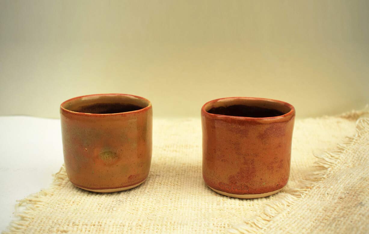 TERRACOTTA POTTERY OF RAJASTHAN Handmade Ceramic-Orange Ceramic Tea Cup-Set of 2