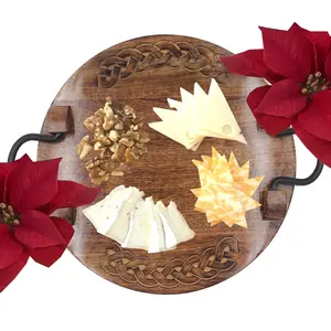 Rustic Round Wooden Serving Tray with...