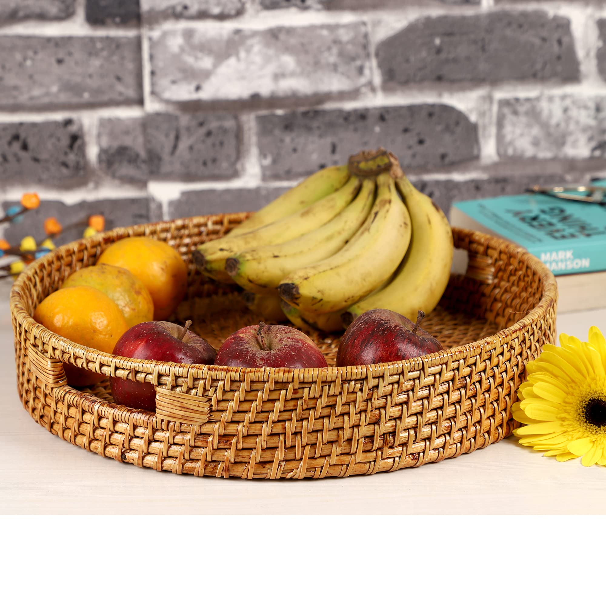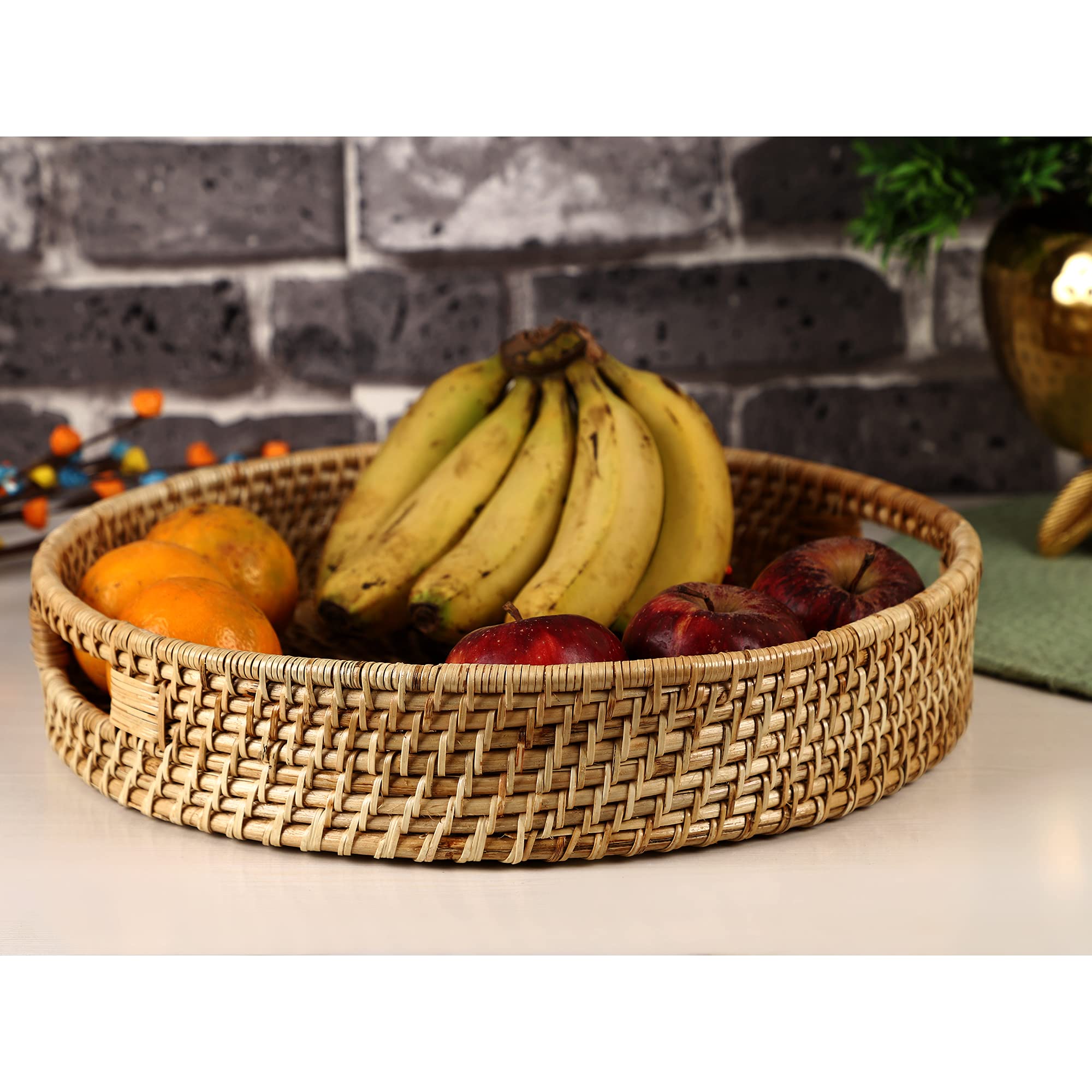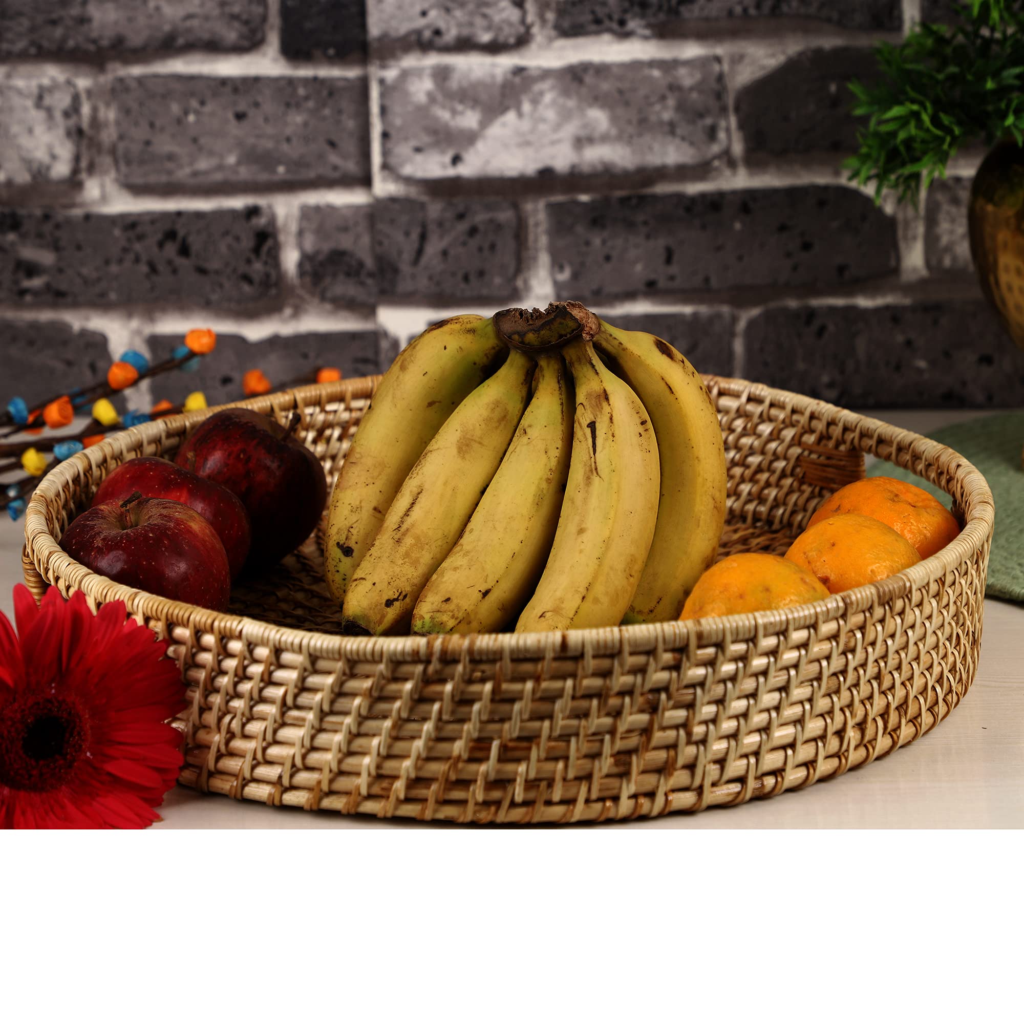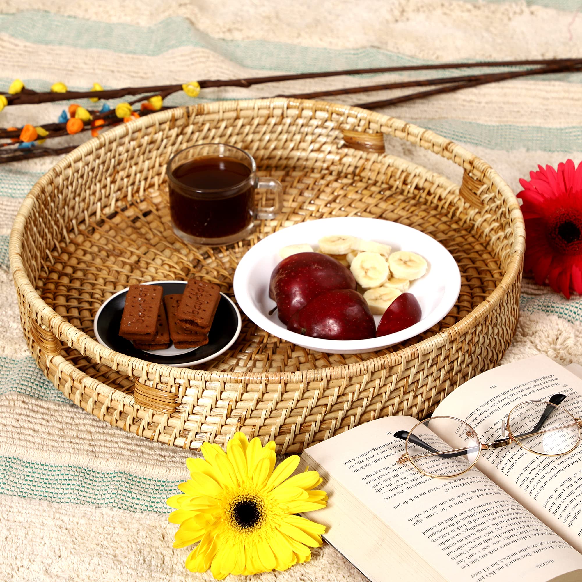 SIKKI CRAFT Emoh Premium Cane and Wicker Serving Trays and Platter with Inbuilt Handle (15inch x 3inch)