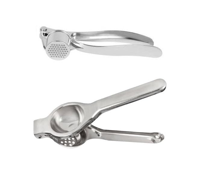 "Garlic Crusher- ""You can easily mince both unpeeled garlic cloves and peeled root ginger with few seconds using this Ginger/Garlic Crusher. This garlic crusher is made of high-quality food-grade 304 stainless steel so you do not have to worry about rusting at all."" Lemon Squezzer- Our premium lemon squeezer is made with ultra-strong high quality STAINLESS steel with the perfect metal composition for no corrosion or rusting and unbreakable tank status 2 in 1 with Lemon Squeezer and Bottle Opener This stainless steel lemon press/lime press can juice limes small lemons and even small sized oranges. This manual juicer is made with sturdy food-grade stainless steel this squeezer comes with a extra feature which is bottle opener which is situated at the top of squezzer Product Dimension-20 CM "