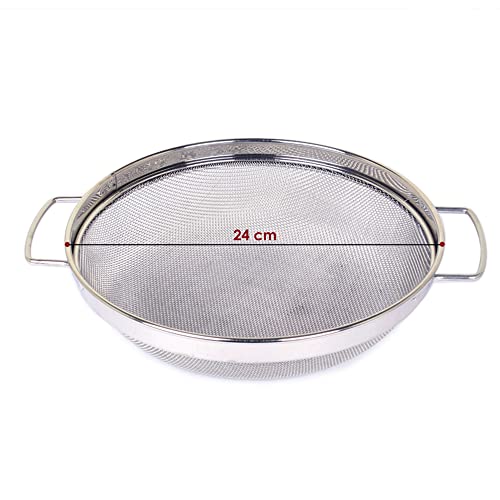 These puran jali/strainers / chalni are multipurpose in use. Can be used for straining juice milk tea soup and other liquid items as well as food items. This puran strainer is made from good quality food grade Stainless Steel. Must have for every smart kitchen. The Purpose of this puran chalni can be used for Sieving and Pulping of Food Grain Wet Dough and Mango in Home Kitchen Restaurants Hotels and Catering Services. Comes with Food Grade Stainless Steel Wire Mesh perfect for straining Puran and other food items. Available in different sizes.