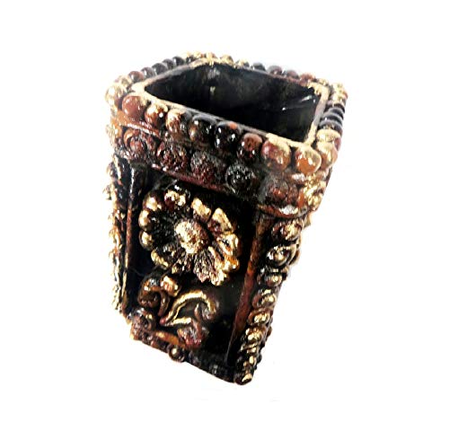 WOOD CARVING WORK Antique Looking Dark Metal Finish Handcrafted Paper-Made (Papier Mache) Unbreakable Pen Stand