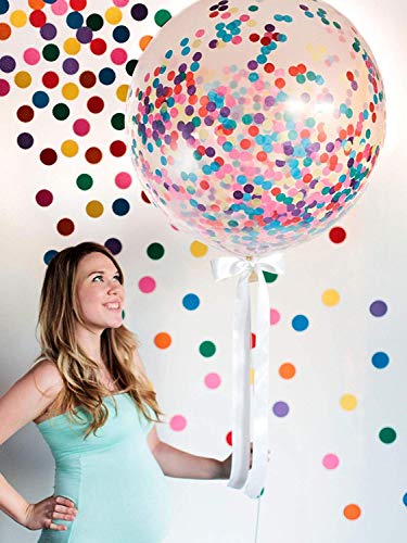 The balloons that are shown in the picture are transparent . The ones received are milky white. The confetti is barely visible.