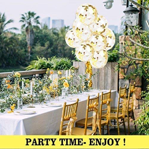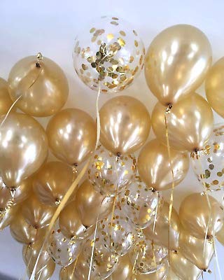 • Luxurious colors in 5 each of metallic latex balloons 3 pieces of clear balloons prefilled with gold confetti pieces 1 pieces of bright hert foil balloons