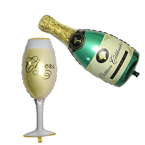 Color:Wine Glass and Champagne36" Wine Glass and Champagne Foil Balloons for Wedding Brthday Party Anniversary Decorations.