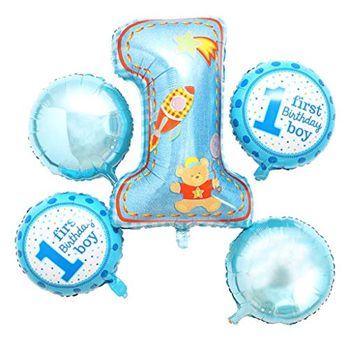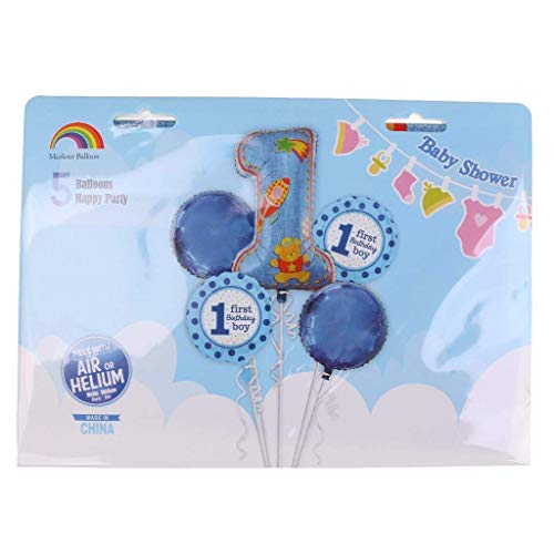 1 number shaped big toy -air-helium balloon (pack of 5 balloons) which can be used on multiple occassions like-Brthday/first Brthday/welcome Small boy/Small shower and more. it can be filled with normal air with the help of a straw (given in the pack but if you want to get floating experiance than you need to fill it with helium gass.it is best for room decorationand can be also used with other party materials.