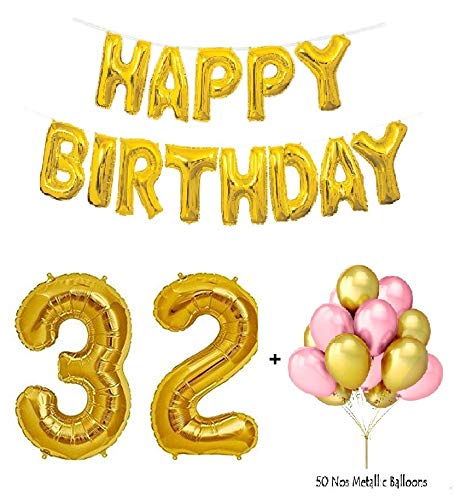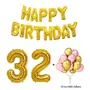 Number 32 Gold Foil Balloon & Happy Brthday Banner