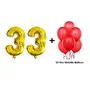 Number 33 Gold Foil Balloon and 50 Nos Red Color Latex Balloon Combo