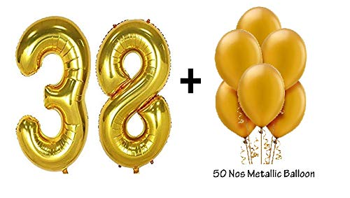 Number 38 Gold Foil Balloon and 50 Nos Gold Color Latex Balloon Combo