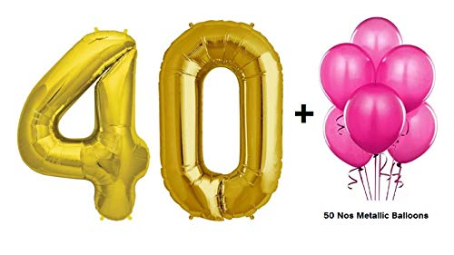 Number 40 Gold Foil Balloon and 50 Nos Pink Color Latex Balloon Combo