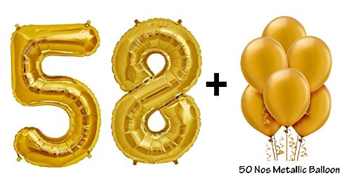Number 58 Gold Foil Balloon and 50 Nos Gold Color Latex Balloon Combo