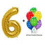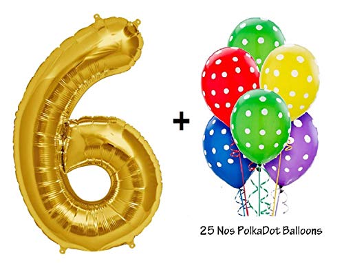 Number 6 Gold Foil Balloon and 25 Nos Polka Dot Multi Color Latex Balloon Combo