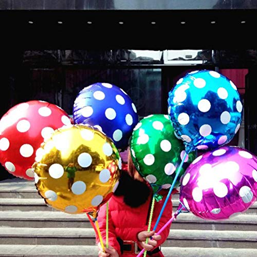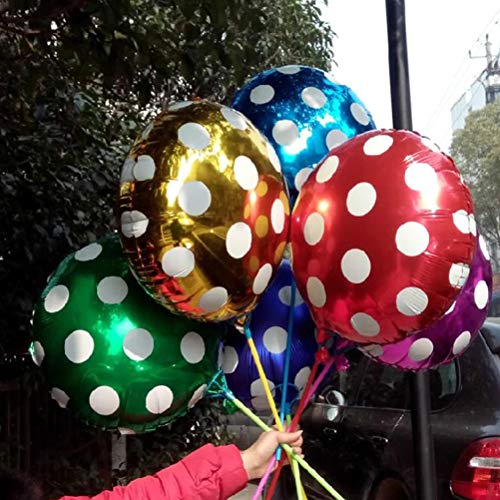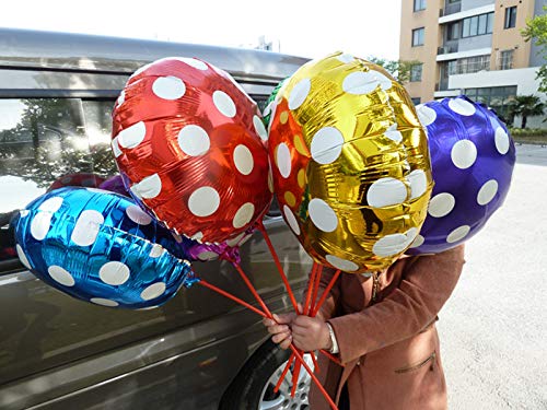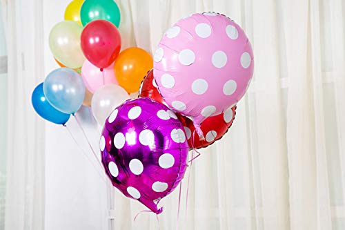 Polka Dots Round Ball Foil Balloon 18 Inch for Happy Brthday Small Shower Welcome Decoration This foil balloon is helium quality and suitable to inflate with both helium or air. This balloon is self sealing so no tying with fingers required 100% Brand New & High Quality Uses MicroSeal technology for strong and longer lasting seal with a seamless appearance