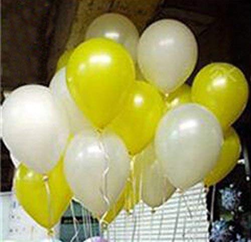 Products 10 Inch Metallic Hd Shiny Toy Balloons - Yellow White for Decoration and Party (20 Pcs)