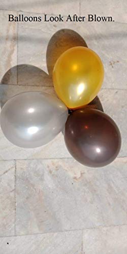 Size:Pack of 60|Color:Golden Silver BrownProducts is famous for sell varieties of Brthday supplies and other party supplies. we are famous for gift items balloons KDs play items and party decoration items. Metallic Finish Latex balloons are beautiful and fun addition to any party. No party would seem complete without balloons to play around with. Balloons are not just for KDs parties they can be used anywhere anytime and for any occasion you wish to celebrate. Whether it is a party in the office a Christmas bash a Small shower wedding or a causal party for friends balloons seem to be an essential of party supplies. Along with buntings balloons are the most favored decorations for any occasion