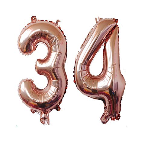 Rose Gold Number 34 Thirty Four Foil Balloon 16" Inch Balloon