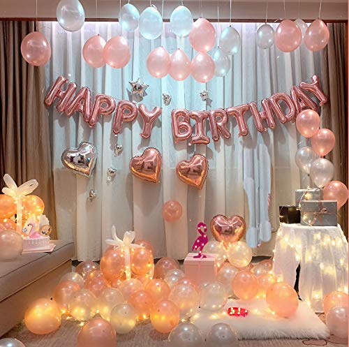 Color:with Rose Gold and White Metallic Balloons + Foil Balloons - (Pack of 47 pcs)Included in this package are 13 pcs superior quality H-A-P-P-Y-B-I-R-T-H-D-A-Y letter foil balloons in ROSE GOLD for Brthday party decoration. Also included 30 pcs Rose Gold and White Metallic Balloons and 4 pcs Foil Balloons in Star / hert Shape. This item is sold and serviced by Balloon Junction. One of the pioneers in bringing a wide range of balloons for all occasions party supplies and party decoration items for all kinds of occasions like 1st Brthday Boy Brthday Girl Brthday Small shower Anniversary Bridal shower Engagements Etc. We have one of the widest range of quality products to suit the needs of our customers. Search for "Balloon Junction" in the search bar for reaching our store front.