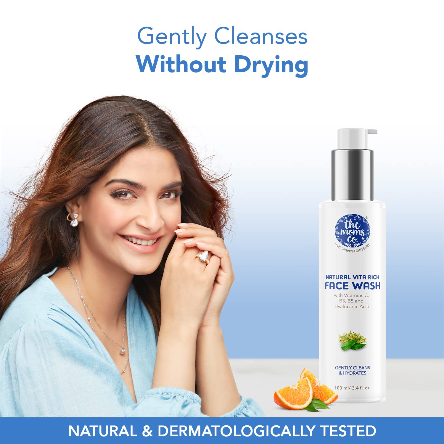 The Moms Co. All Natural Tear-Free Cleaning Bundle for Baby with Tear-Free Natural Baby Wash (200ml) and Baby Shampoo (200ml)Natural tear-free baby wash and shampoo soften and soothe baby's delicate skin and scape with their toxin-free combination of coconut based mild cleansers that gently clean while oils like avocado usda-certified organic chamomile and organic aloe vera gel soothe and moisturise. Protect your baby the natural way with the moms company baby care products India's only all-natural Australia-certified toxin-free baby care range with usda certified organic actives. ? What's in: ? Avocado oil to nourish and moisturize with its high content of fatty acids and vitamins a d and e ? Organic chamomile oil and calendula oil for their skin soothing properties ? Organic argan oil and organic aloe vera gel to moisturize and soften skin ? Coconut-based cleansers that gently clean? What's out: our sulphate and paraben free baby wash is made without sls sles dea/tea phenoxyethanol synthetic fragrances pegs and many other potentially harmful chemicals ? Safe for: baby from 0 months ? Certified toxin free and made safe by safe cosmetics Australia ? Australia allergy certified ? Dermatologically tested.The Moms Co. Natural Vita Rich Face Wash | All Skin Types | With Vitamins C B3 & B5 Neem Extract and Witch Hazel (100ml)The Moms Co. Natural Vita Rich Face Wash | All Skin Types | With Vitamins C B3 & B5 Neem Extract and Witch Hazel (100ml)