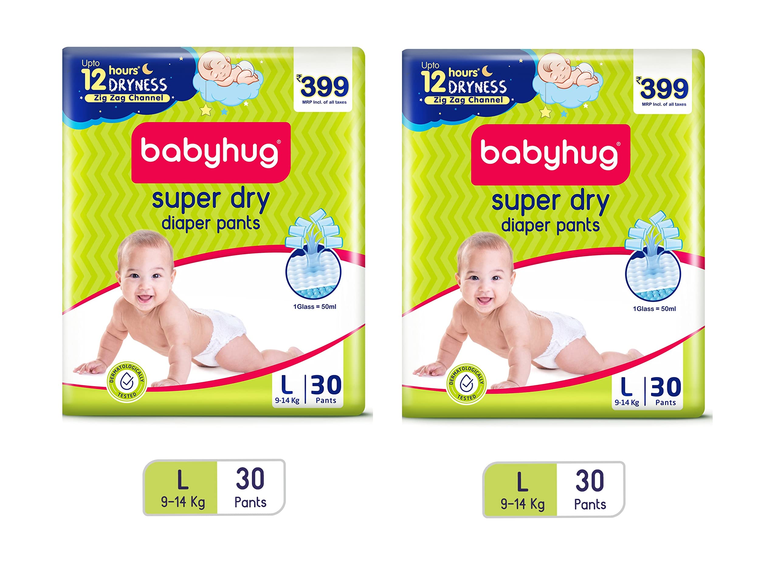 Soft & Comfortable Cottony Soft & Breathable Material: Helps to protect baby's sensitive skin Soft & Flexible Waist Band: Super Stretchy flexible elastic adapts to the baby's waist to give a comfortable fit 12 hours Dryness Zig zag technology Anti Rash & Gentle Anti-Rash Shield: Prevents risk of diaper rashes 3D leak guard Brand - Babyhug Type - Diapers Stretch the Waist Band Of Diaper By Both Hands Widen Legs Of Baby & Insert Diaper Pull Up the Diaper Babyhug Pant Style Diaper comes with zig zag channel technology which helps in even flow quick absorption and dryness upto 12 hours. This special technology helps prevent heaviness of the diaper which is very important for your baby's comfort. The feather soft material and flexible waist band further enhances the comfort for your loved one.