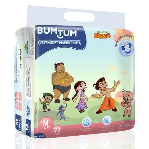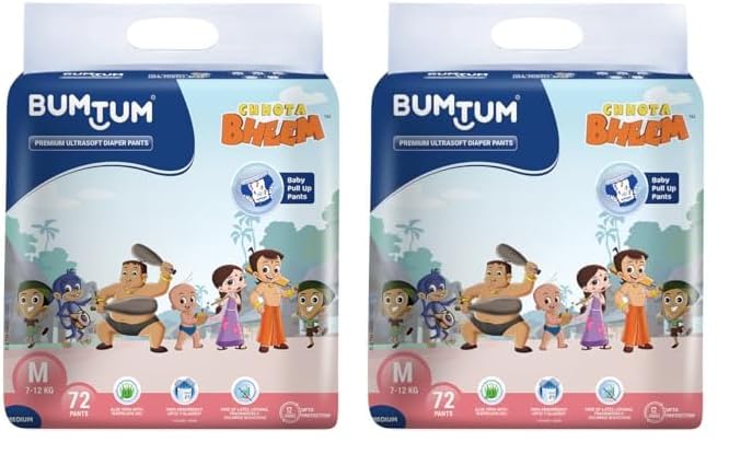 Bumtum Chota Bheem Medium Baby Diaper Pants, 72 Count, Leakage Protection Infused With Aloe Vera, Cottony Soft High Absorb Technology (Pack of 2)