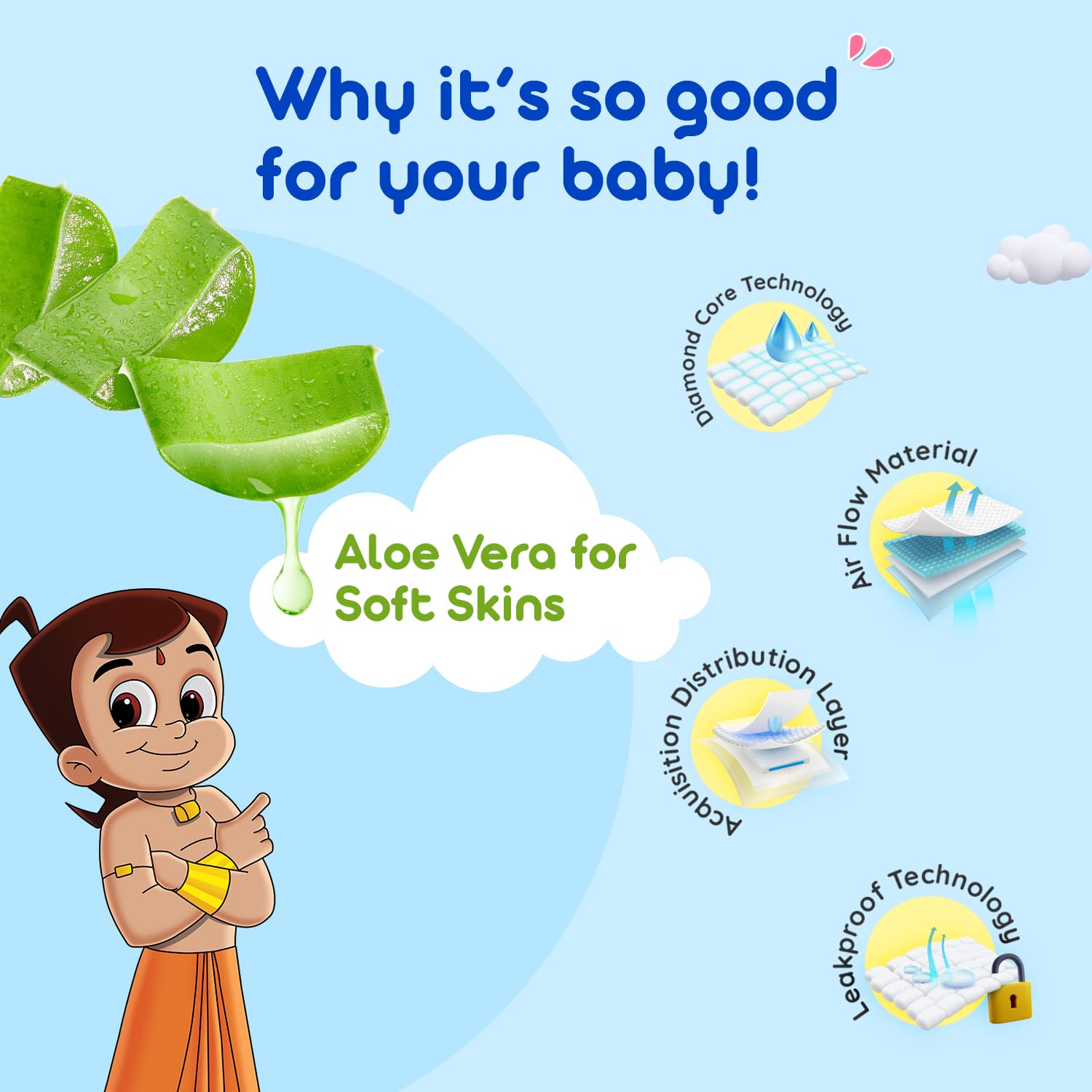 Bumtum Chota Bheem Medium/M Size Baby Diaper Pants 87 Count Leakage Protection Infused With Aloe Vera Cottony Soft High Absorb Technology