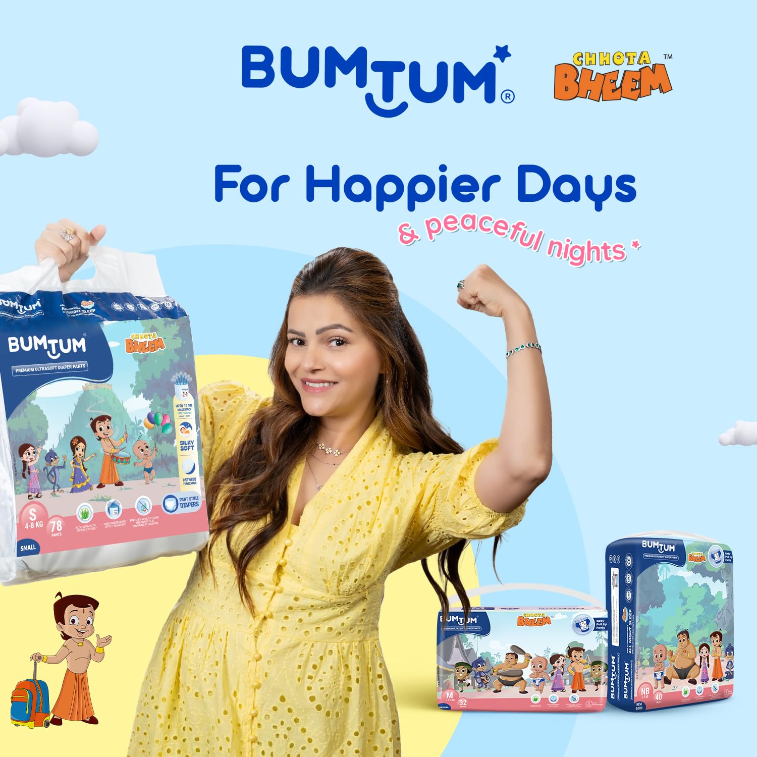 BUMTUM PANT-STYLE DIAPERS: are uniquely curated to keep your baby's day & night full of comfort and materialized with cottony soft breathable and non-woven material that ensures a cosy experience.