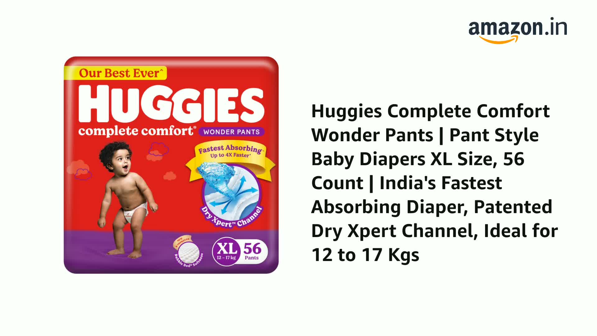 Huggies Complete ComfortTM Wonder Pants provides 5 benefits in 1 diaper. With India's 1st Pants with Bubble Bed technology Huggies provides a soft inner bubble layer that wraps your baby in softness. Made from air friendly material our diaper pants help your baby's skin to breathe. Up to 12 Hours of Overnight Absorption allows you and your baby to have a comfortable sleep. Triple leak guard provides extra padding to fight leakage and Comfy fit waistband ensures a snug fit for your baby. Our Pant style diapers are available in all sizes from Newborn/XS S M L XL and XXL sizes.