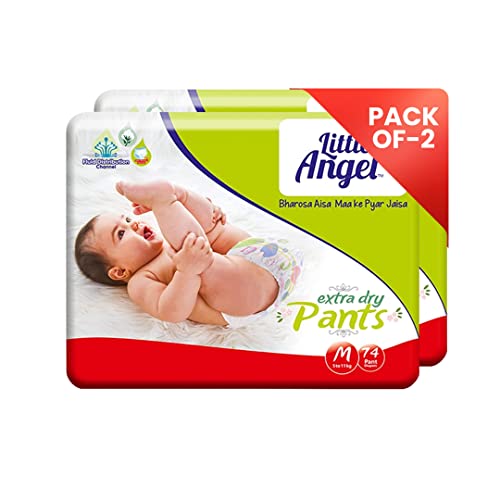 Little Angel Extra Dry Baby Pants Diaper Medium (M) Size 148 Count Super Absorbent Core Up to 12 Hrs. Protection Soft Elastic Waist Grip & Wetness Indicator Pack of 2 74 count/pack Upto 5-11kg