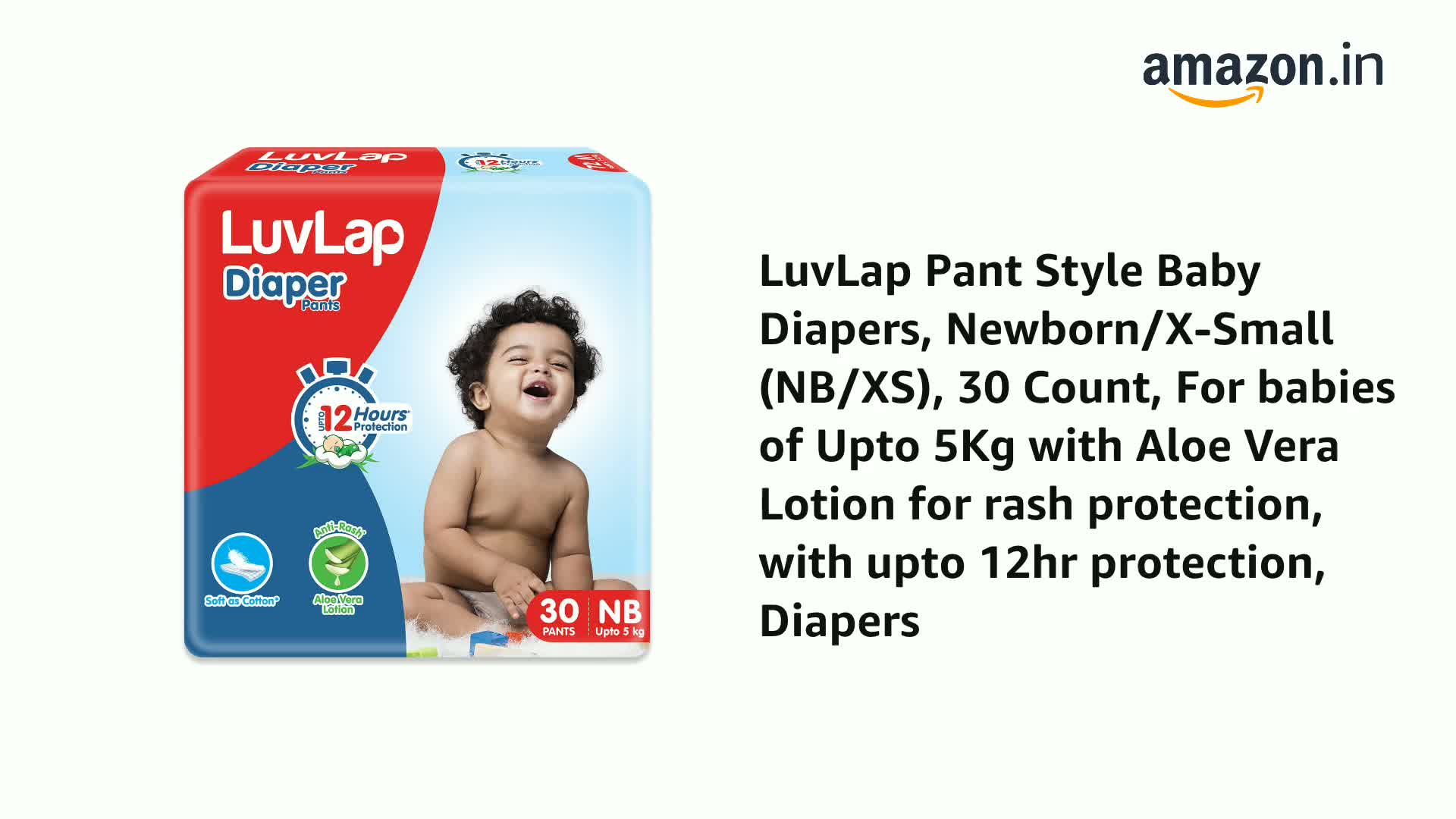 LuvLap Pant Style Baby Diapers, Newborn/X-Small (NB/XS), 30 Count, For babies of Upto 5Kg with Aloe Vera Lotion for rash protection, with upto 12hr protection, Diapers