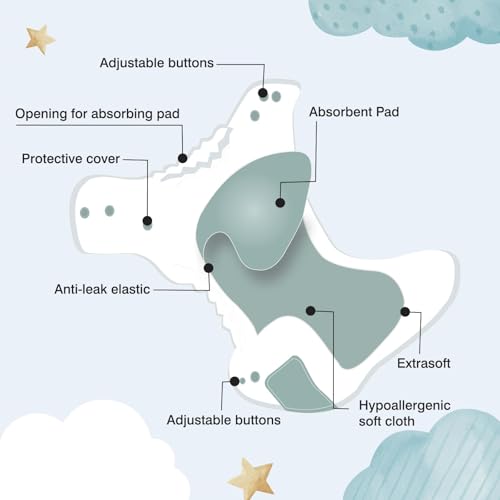 Mee Mee Reusable Baby Cloth Diaper, Double Leak Guard, High Absorption, Quick Dry, Stain-Proof Comfort & Protection, 3m+, Adjustable Waist & Height with snap Buttons, Absorbent Insert