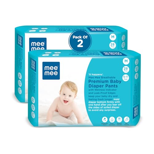 HomeBabyDiaperingBaby DiapersMee Mee Breathable Premium Medium (M) Size Baby Diaper Pants with Wetness Indicator and Leak-Proof Edges, protection upto 12-hrs, M Size, 56 Pieces, 6-12 kg