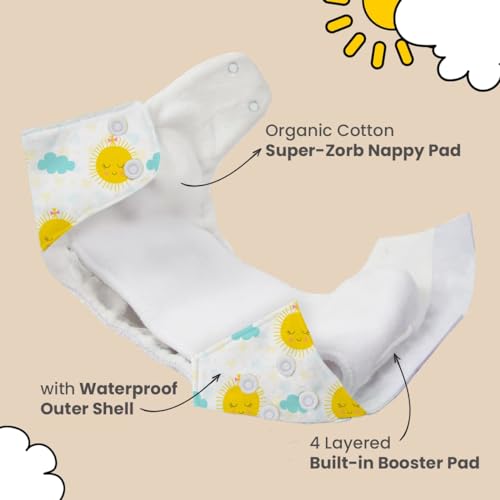 Mother Sparsh Plant Powered Cloth Diaper with FREE Plant Powered Water Baby Wipes (60Pcs) | Reusable Cloth Diaper for Babies with Built in Booster Pad | Cloth Like baby Wipes (B.Hug)