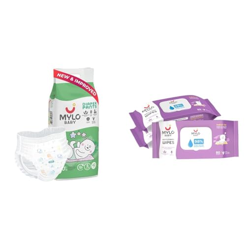 HomeBabyDiaperingBaby WipesMylo Baby Diaper Pants Small (S) (42 count) Leak Proof & Mylo Baby Gentle Wipes With Lid (Pack of 3) | 80 Wipes Count | 4-8 kgs with Aloe Vera Lotion | Rash Free | 12 Hours Protection | 98% Pure Water