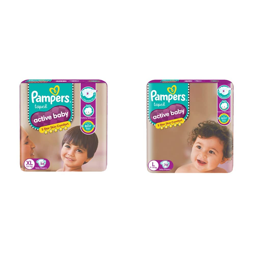 Pampers Active Baby Extra Large Size Diapers (56 Count) & Pampers Active Baby Diapers, Large (78 Count)