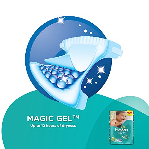 Pampers All round Protection Pants Extra Large size baby Diapers (XL) 112 Count Lotion with Aloe VeraNEW IMPROVED Pampers all round protection pants have ANTI RASH BLANKET* containing Lotion with Aloe Vera to keep your baby’s skin protected from redness and rashes. Top quality diaper pants with Up to 100% WETNESS LOCK keeps the pee locked inside and baby's bum stays dry for ALL NIGHT. Air channels & stretchy belt provides your baby breathable airy fit comfortable even in summers. Pampers unique Magic gel technology provides up to 12 hours of dryness and has up to 2X faster absorption The new and improved design has an EXTRA SOFT material and a fit that adapts to baby’s movements for best comfort. Available in all sizes Small diapers medium diaper pants large size diaper pants XL diapers XXL diapers XXXL diaper pants. Our pants with fun exterior graphics fun designs of characters and a delightful fresh Aloe fragrance ensures you enjoy every change with your baby (*Blanket refers to soft topsheet with lotion Helps prevent rash due to wetness after 1 day of usage based on clinical studies in USA 2000 2019)Pampers Taped Baby Diapers Medium (MD) 66 countNEW & IMPROVED Pampers all-round protection pants have ANTI-RASH BLANKET* containing Lotion with Aloe Vera to keep your baby’s skin protected from redness irritation and rashes. quality diapers with 100% WETNESS LOCK keeps the pee locked inside & baby's bum stays dry for ALL NIGHT. Air channels & stretchy belt provides your baby breathable airy fit - comfortable even in summers. Pampers unique Magic gel technology provides up to 12 hours of dryness – and has 2X faster absorption. The new and improved product design enables a comfortable fit closer to the baby’s body and an EXTRA SOFT flexible waist band that adapts to baby’s movements for best comfort. Available in all sizes – Small diapers medium diaper pants large size diaper pants XL diapers XXL diapers XXXL diaper pants. A top layer with cotton-like soft material ensure a comfortable night’s sleep. Our pants with fun exterior graphics fun designs of characters and a delightful fresh Aloe fragrance ensures you enjoy every change with your baby. (*Blanket refers to soft topsheet with lotion. Helps prevent rash due to wetness after 1 day of usage based on clinical studies in USA 2000-2019). view larger Size chart Now New Pampers with magic gel can absorb quicker and hence keep the skin dry for upto 10 hours. So your baby's skin will be dry throughout the night and give him a peaceful undisturbed golden sleep. When to Change a Diaper In the first couple of months you may find yourself changing diapers up to 10 times in 24 hours. Diapers should be changed whenever they are wet or soiled. Your baby will often (but not always) let you know. With a super-absorbent diaper like Pampers diapers you can tell if it's wet by urine indicator or by feeling for lumps in the absorbent material. Here are some common times for changing diapers: Right before or right after every feeding After every bowel movement Before bedtime When your baby wakes up When you go out with your baby The Art of Changing Diapers Pampers Diapers are designed to adjust to your baby's shape for a snug comfortable fit. While changing diapers there's no need to fold the waistband in or out or to adjust the leg cuffs. Place tabs parallel to the waistband and centered on the character strip. Use the characters as guides to ensure the fasteners are evenly spaced. Keep baby products such as powder away from the fasteners so they maintain their stickiness. Wiping baby bottoms Have a supply of baby wipes or clean wet tissues handy while changing diapers to help keep your baby clean and fresh. For baby girls while changing diapers always wipe from front to back to minimize the amount of stool material that gets near her genitals. Also be careful to clean all areas as the folds in the skin around her genitals can hide urine and soil. Treating and preventing diaper rash Red bumps on your baby's bottom may mean diaper rash. It can be caused by many factors including leaving urine or bowel movement on the skin too long between changing diapers or even as a result of taking antibiotics. And when your baby starts solid foods wait a few days between introducing each new food to see if the rash was caused by a particular food. If your baby has diaper rash clean the entire diapered area gently but thoroughly with a baby wipe or a clean wet tissue. It is also helpful to allow air to reach the skin. Talk to your paediatrician or pharmacist if the rash does not improve. Finding the right size Just like you babies like to wear things that fit just right. Choose a size that does not sag or gap even as your baby crawls and plays. This will help prevent leaks. Each product description on this site gives guidelines that represent the average weight for a particular size. And remember when you move up a size you gain absorbency. Weighing babies The easiest way to weigh your baby is to first hop on the scale yourself. See how much you weigh then see how much you weigh when you hold your baby. If you subtract your weight you'll know how much your baby weighs. Safe diapering You buy the latest toys and babies wind up playing with silly things - like diapers. It's important to keep diapers where they should be on your baby's bottom. Don't let your baby put the diaper in her mouth. Discard any diaper that has become torn or unsealed and read the warning label on all bags. Diaper gel facts AGM is the absorbent gelling material widely used in diaper padding to absorb wetness. It is perfectly normal to see some gel on the skin from time to time especially if the diaper is heavily saturated. It can easily be removed by wiping your baby's skin. This material has a long history of safe use in a variety of products and has been in diapers for more than a decade. Absorbent gelling material is closely related to ingredients widely used in cosmetics in food 