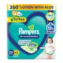 Pampers All Round Protection Pant Style Baby Diapers are available in New born (NB) Small (S) Medium (M) Large (L) X-Large (XL) XX-Large (XXL) XXX-Large (XXXL) sizes. NEW and IMPROVED Pampers all round protection pants have ANTI RASH BLANKET* containing Lotion with Aloe Vera to keep your baby skin protected from redness and rashes. Top quality diaper pants with Up to 100% WETNESS LOCK keeps the pee locked inside and baby's bum stays dry for ALL NIGHT. Air channels & stretchy belt provides your baby breathable airy fit comfortable even in summers. Pampers unique Magic gel technology provides up to 12 hours of dryness and has up to 2X faster absorption The new and improved design has an EXTRA SOFT material and a fit that adapts to baby movements for best comfort. Our pants with fun exterior graphics fun designs of characters and a delightful fresh Aloe fragrance ensures you enjoy every change with your baby (*Blanket refers to soft topsheet with lotion Helps prevent rash due to wetness after 1 day of usage based on clinical studies in USA 2000 2019)