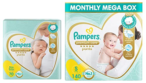 Pampers Premium Care New Born Diapers (70 Count) & Pampers Premium Care Pants Diapers, Small, 140 Count