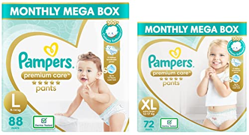 Pampers Premium Care Pants Diapers Monthly Box Pack, Large, 88 Count & Pampers Premium Care Pants Diapers Monthly Box Pack, X-Large, 72 Count