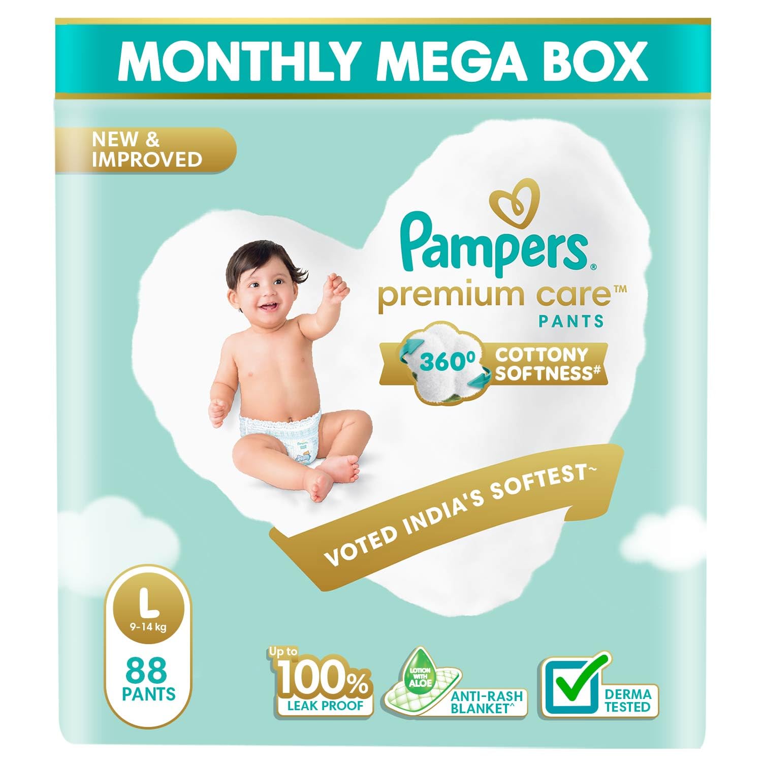 • New Pampers Premium Care Pants with 360 degree cottony softness that provides your baby with all-round comfort