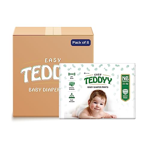 TEDDYY Baby Diapers Pants Easy New Born 144 Count (Pack of 8), Upto 5 kgs, 12 hrs Leak Protection, Anti - Bacterial