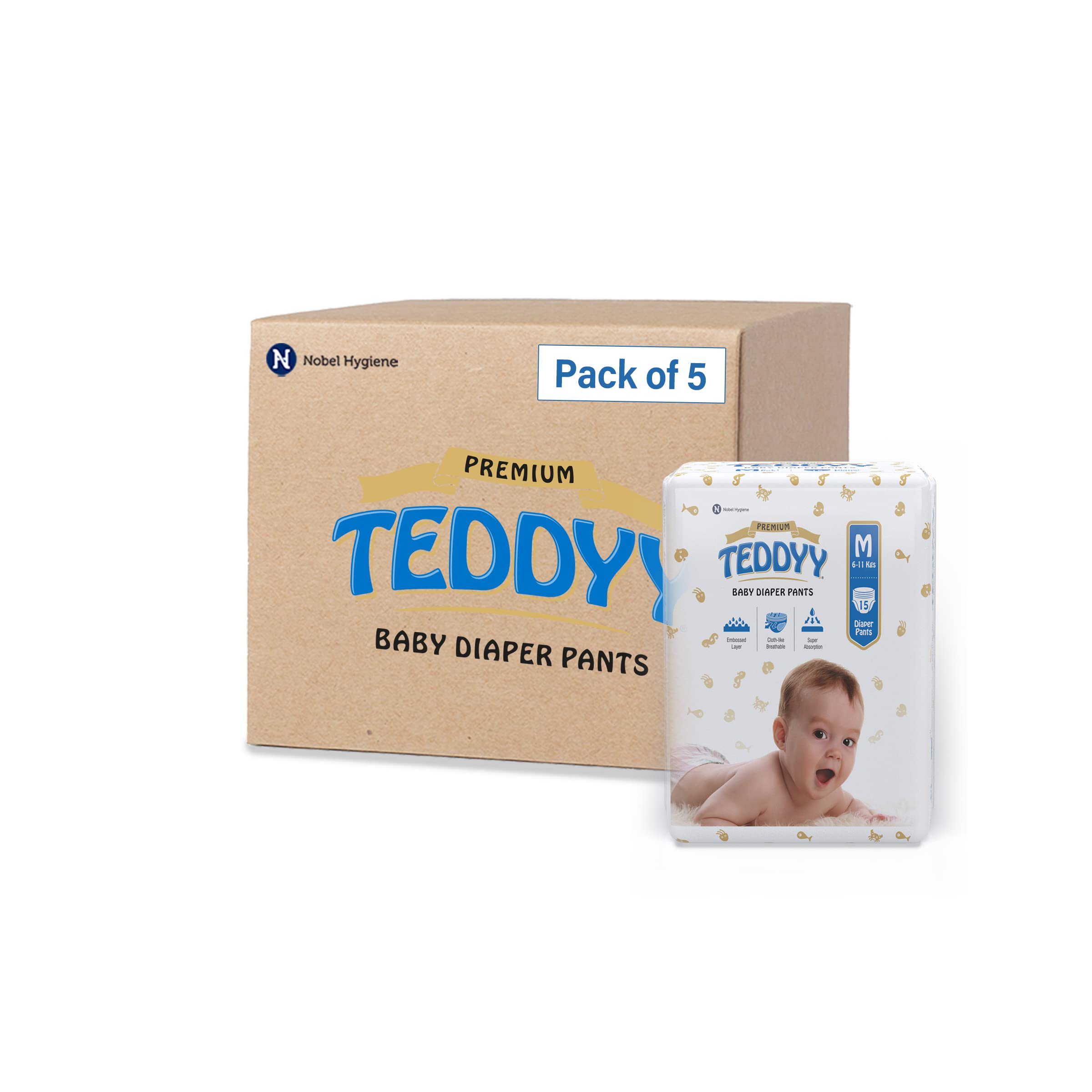 TEDDYY Baby Diapers Pants Premium Medium 75 Count (Pack of 5) 7-12 kgs Long Lasting Absorption Anti - Bacterial