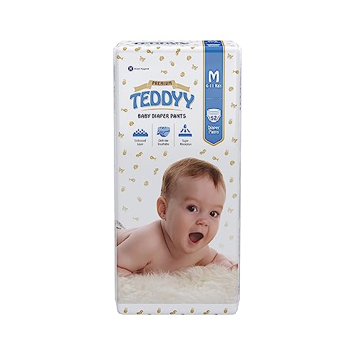 TEDDYY Baby Premium Diapers Pants Medium 52 Count, 7-12 kgs, Long Lasting Absorption, Anti - Bacterial