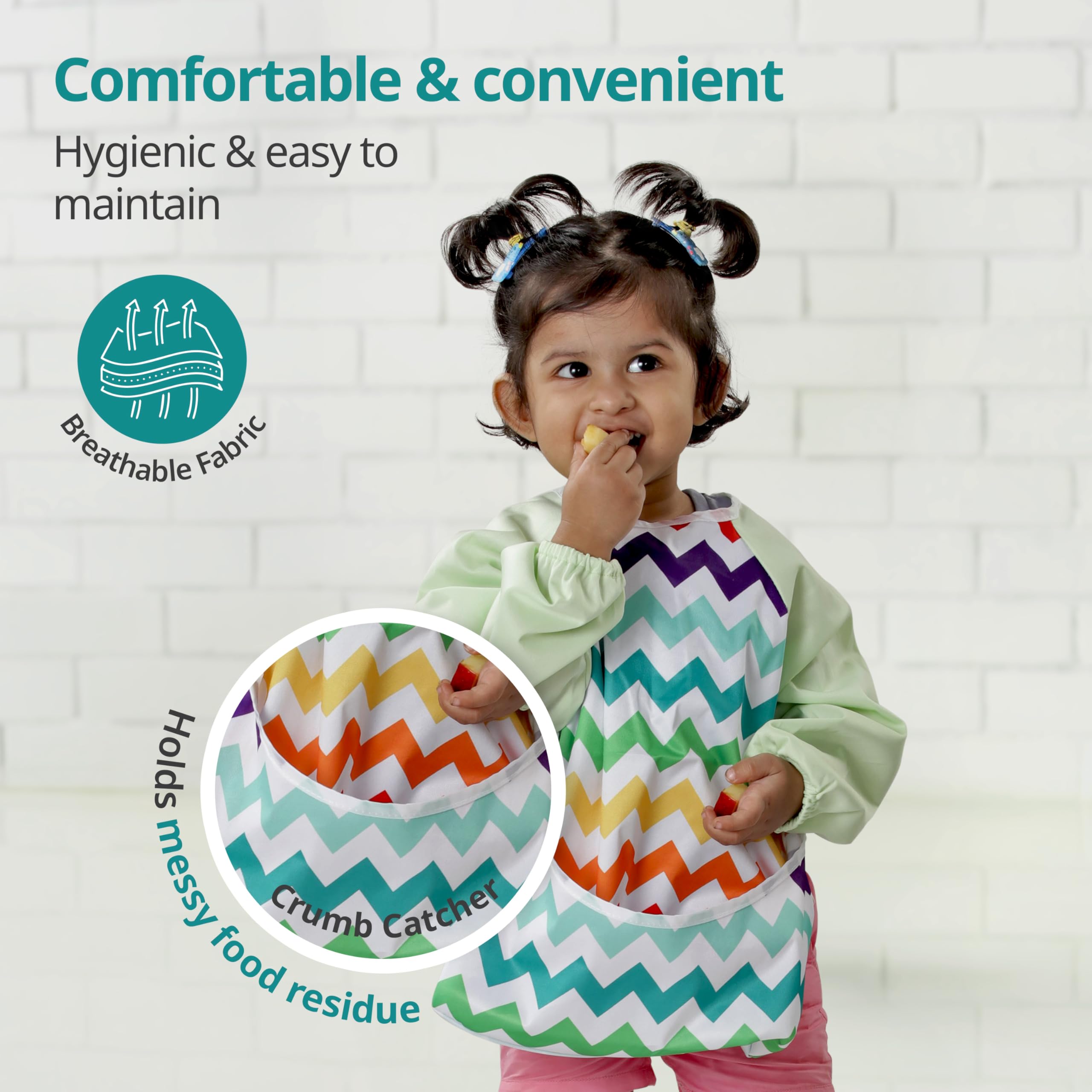 Baby Weaning is awesome. But it's a messy affair & the baby's hygiene is of utmost importance. Being true to our promise of safety & comfort for you & your baby we are happy to introduce the Long Sleeved Bib. This Long Sleeved bib ensures baby weaning is less messy & happier. With the help of the Long Sleeved Bib make your baby's mealtime a really enjoyable one